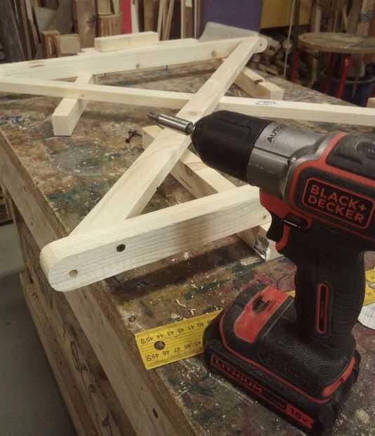 Después de ese tiempo lo fuera (debe permanecer Unido) muy cuidadosamente perforar y añadir tornillos en cada conexión. Añadir también un par de tornillos en el centro de las diagonales X, un tornillo de cada lado.
