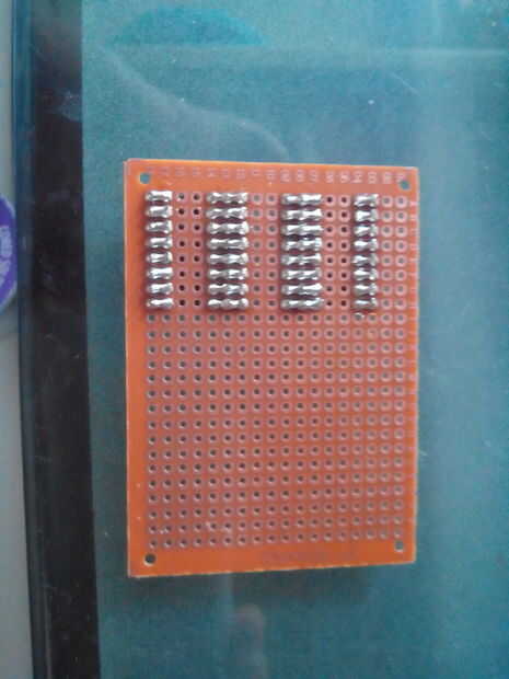 Con 8 cabezales de perno puede soportar sólo IC con 16 pines. Usted podría decidir ampliar la utilidad de la Junta dándole más pins por lo que podría, por ejemplo, apoyar un ATmega 328. Para mejorar la Junta también se podrían añadir más filas de encabezados de paquetes más amplia de la ayuda, pero tenga en cuenta que lo estoy describiendo la construcción van sólo tienen dos filas de agujeros restante en su perfboard, así que ya sea tienen que comprar una más grande perfboard o trabajar en la otra dimensión de la Junta si usted quiere tener más dos filas de encabezados para el zócalo.
