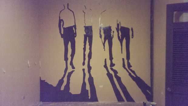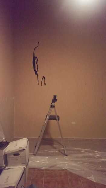 Enmascare el piso con cinta de pintor y entonces coloque la lona con cinta adicional.