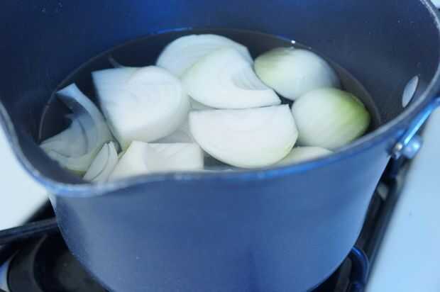 Hervir las cebollas en una cacerola con agua hasta que empiecen a girar a color y son suaves