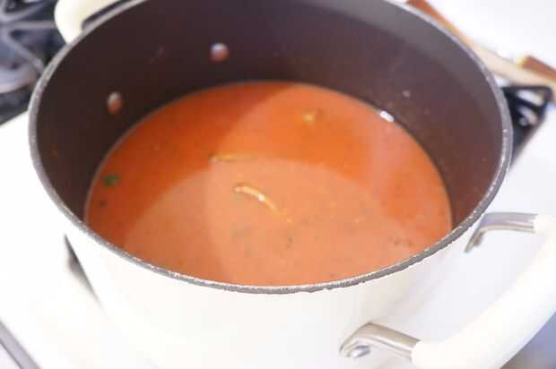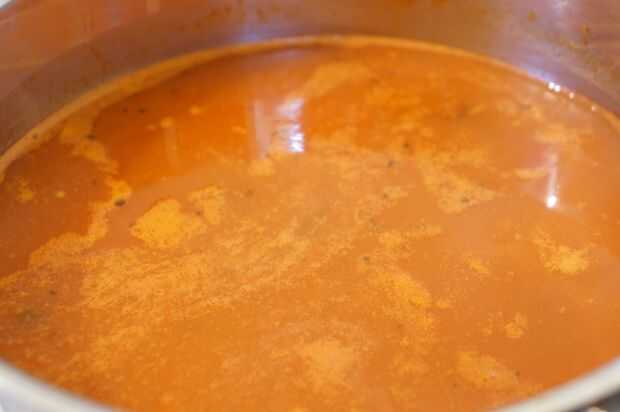 Llevar la mezcla a ebullición y quitar la grasa de la parte superior si es necesario.