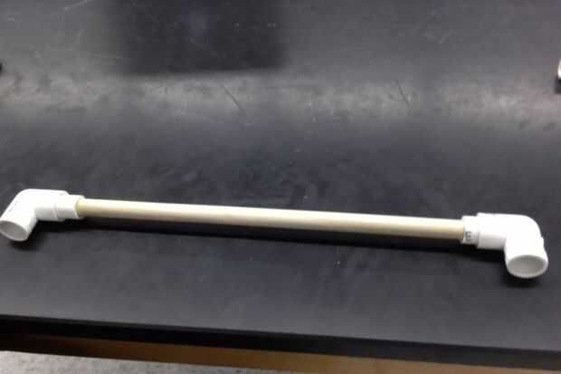 De la 1" en conectores de PVC en ambos lados de la espiga de madera, coloque una articulación del codo en ambas caras.