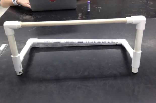 Conectar un 15" en tubo de PVC en los dos codos, encajan perfectamente en el espacio provisto. Asegúrese de que el tubo está acostado encima de la mesa.