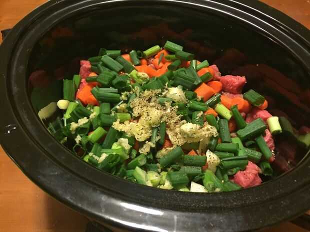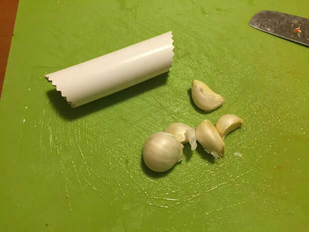 Pelar el ajo y machacar en una prensa. Raspar el prensado bits de la parte delantera de la prensa y dejar caer pedazos machacados a la izquierda en la prensa en la olla como-es.