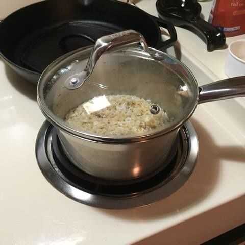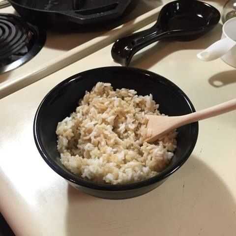 Poner agua a hervir, luego añada el arroz y cocinar a fuego lento en baja durante 5 minutos. Retirar del fuego, mezcle el arroz y cubrir durante 5 minutos más. Luego mueva el arroz en su porción contenedores.