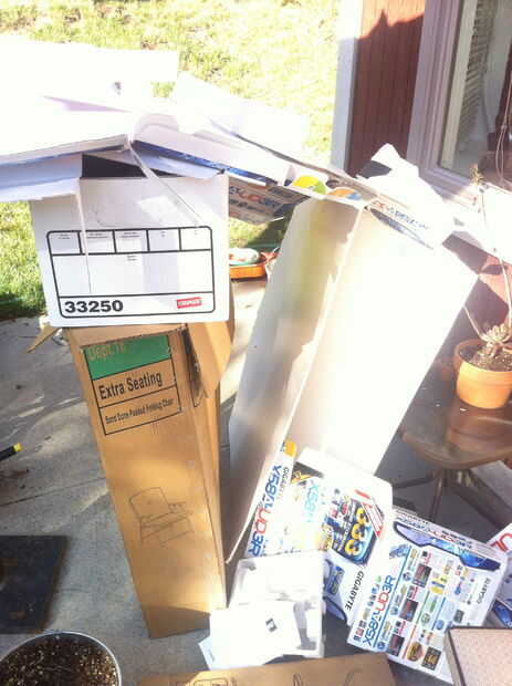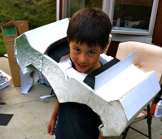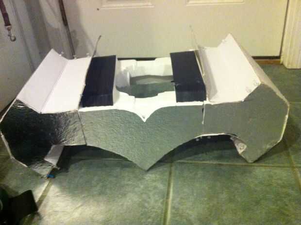 Resulta que, una caja de envío de informática básica con dos partes de relleno de espuma de poliestireno resultó para ser el tamaño exacto para no sólo la estructura del hombro, pero los protectores de muñeca (ver paso 6). La espuma de envío era un poco grande, pero teniendo en cuenta la necesidad de movilidad y el mínimo énfasis en exactitud, decidí haría.