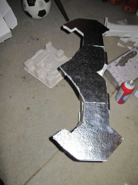Para el marco de los hombros, he utilizado bastante la única imagen del Titán pudo encontrar y esbozado el patrón básico de papel 11 x 17. Periódico haría bien, algo como una plantilla. Después de cortar la plantilla, puso contra la base de la espuma y tallada la forma con el cortador de hilo caliente.