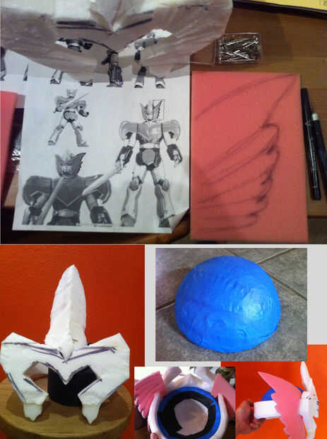 A continuación pegado un pedazo de espuma de sobra del hemisferio de un abortado proyecto floral. La cinta adhesiva fue pintada en negro mate y se deslizó alrededor de la máscara para formar un casco de media concha.