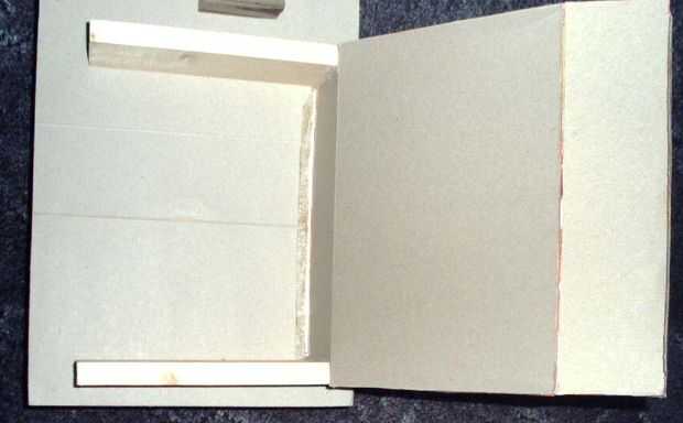 Ahora toma la cartulina pegan y utiliza como los muros largos y parte superior de la caja. Pegamento de un lado a los extremos de las dos piezas de madera y a la base principal. El otro lado debe ser ajuste por lo que puede doblar para hacer el otro lado de la pared de caja larga. NO PEGAR ESTE LADO.