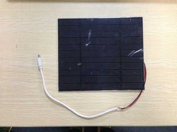 Conecte el cable rojo del panel solar para el perno inferior izquierdo y el cable rojo del micro USB a la patilla inferior derecho.
