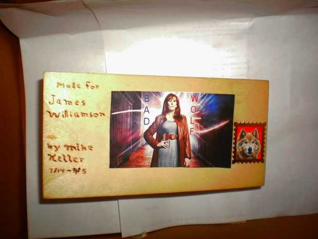 BTW: esa última foto es el fondo de la caja. He añadido el lobo malo que antes de imprimir y pegado en. Sucedió que una pegatina de Lobo también en mano y luego personalizar la caja con el nombre de la persona que estaba enviando a y por supuesto, mi firma y hora tomó a pyrograph.