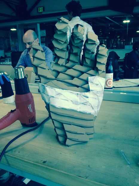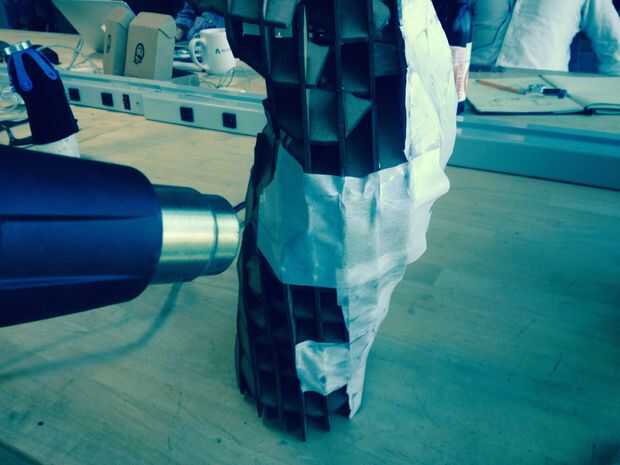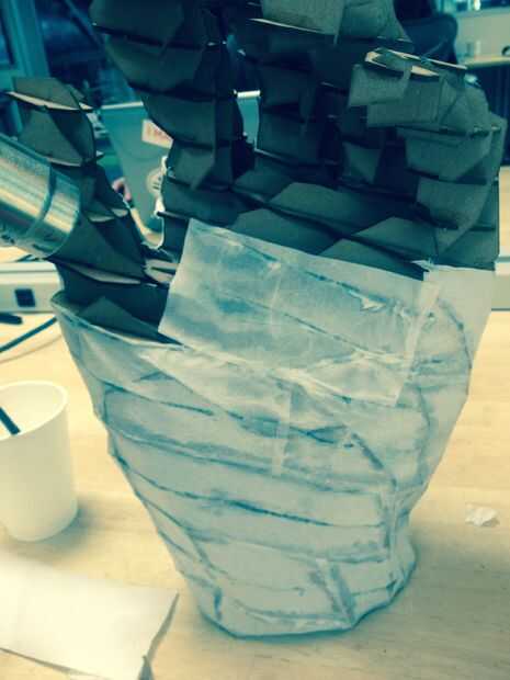 5) por último, utilizando la pistola de aire caliente o secador del soplo, soplo sobre el área que acaba de hacer húmedo hasta que se seque. El papel se reducirá mientras se seca creando así una piel apretada. Se verá en el video de Noguchi, utilizan un gabinete de foco calentado para este paso, usted podría hacer esto pero creo que esto sería confiar en toda la pieza está húmedo - la complejidad de mi forma escultórica y el tiempo necesario para cubrir la pieza traducida al enfoque secador de pistola/golpe de calor.