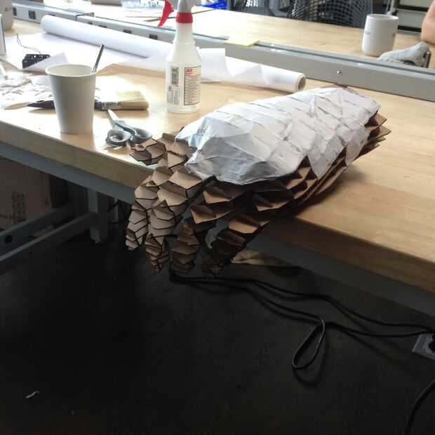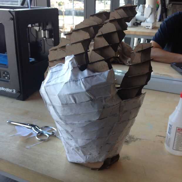 Asegúrese y ver las técnicas de Noguchi tal como se muestra en el video yo vinculado anteriormente antes de continuar. La principal diferencia entre la técnica de Noguchi y la mía, es que mi forma no es simétrica, por lo tanto no podría utilizar pedazos grandes de papel para cubrir rápidamente áreas grandes de la escultura como en el video. Debido a la complejidad de mi forma y para tener una piel lisa de papel, cortar pequeñas secciones, generalmente de tiras o formas pequeñas de papel para aproximadamente las áreas a cubrir cuando fui.