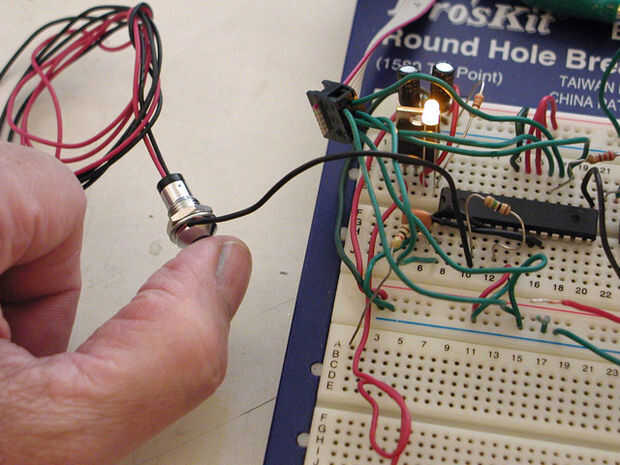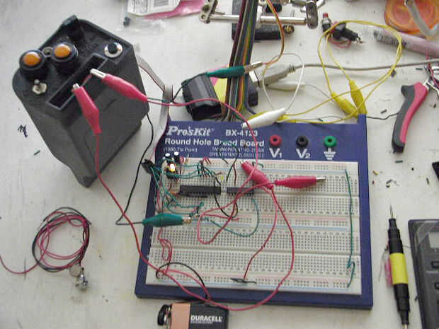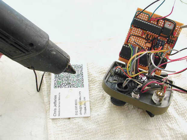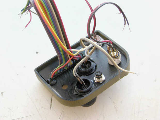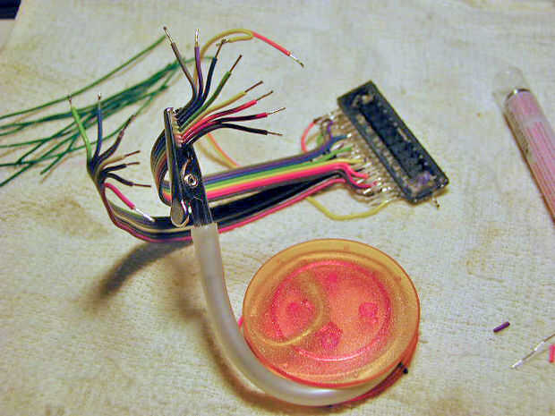 Todos los componentes iban vestidos en el Banco con los mazos de cables usando trozos de cable de cinta, luego todo fue conducido a la placa de circuito. El lío todo era caliente-pegado a la placa frontal, por lo que era apenas posible abrir y cerrar el caso para cambiar las pilas... o continuar la programación.