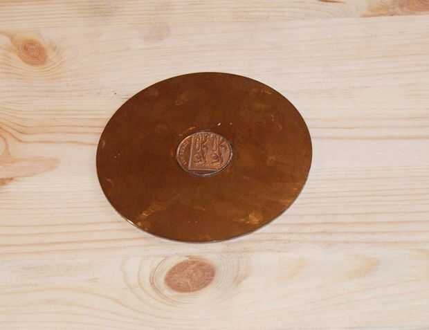 El único problema era que los platos tienen un orificio de 1" de diámetro en el medio! La base del cilindro necesita ser sellada así que añadido a una pieza de 10p a la placa inferior con resina epoxi.