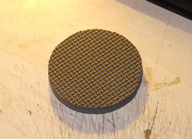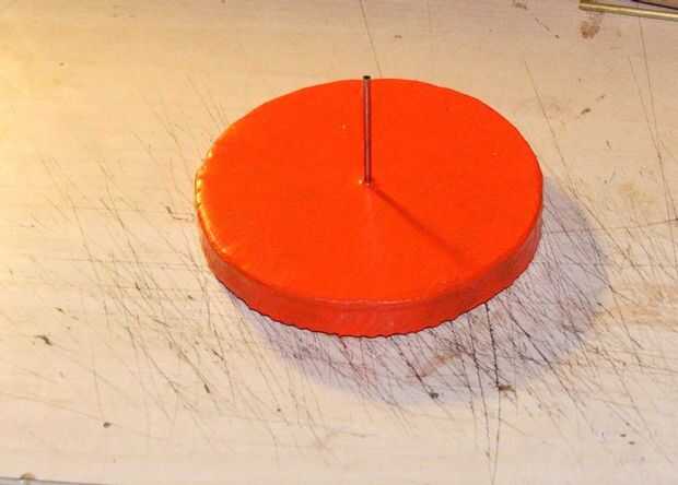 Cortar un disco alrededor de 85mm de diámetro, dejando una separación de 5mm, no sé si eso va a trabajar. El disco es ligero, pero también un poco flexible. Creo que daré un par de capas delgadas de resina para darle una piel dura que debe detenerlo tirarse alrededor.