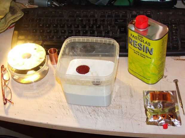 El cilindro de cobre entonces fue pegado sobre el uso de pegamento epóxico y la marca trazada como una guía.