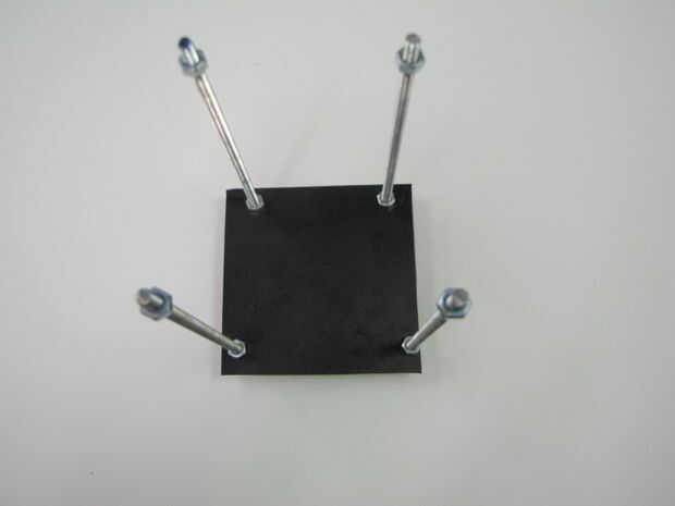 Comience con la placa base (pieza de sustrato con ningún agujero para cámara). Inserte la varilla roscada y una tuerca de la tapa del tornillo en la parte inferior. Atornille una tuerca para regular hacia abajo desde la parte superior apretar el sustrato. Continúe esto por todos los agujeros en la pieza del fondo. Luego atornille las tuercas regulares desde la parte superior, poner el sustrato superior y la tapa con las tuercas de la tapa en el exterior.
