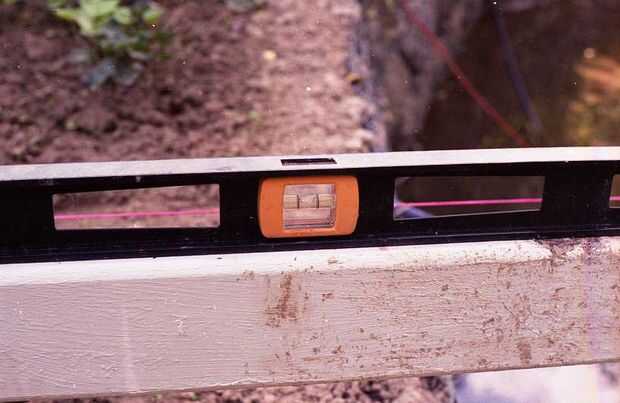 Una vez que las formas están conectadas y niveladas, se mezcla cemento en la carretilla y se añade colorante para obtener el color deseado por Geri y Mac. Como el hormigón se vierte de la carretilla o pala en el formulario, es una buena idea 'rod' la masa todavía líquida. Este 'varilla' consiste en empujar una sección de barras de refuerzo en el concreto líquido y quitar otra vez. Repetir. Esto elimina las bolsas de aire, coloca el hormigón en lo contrario sin llenar las áreas y mezcla el material de la carretilla de varios lotes. Rap de los lados de las formas con el martillo se asegurará de que no son vacíos cuando se eliminan las formas.