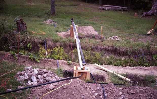Una vez que fueron presentados todos los agujeros, era hora de que la barra. En el Ozarks, cavar un agujero requiere quitar las rocas que no quieren eliminarse. Una barra de acero sólida largo de 6 pies con forma de cincel en un extremo y un punto opaco en el otro es el instrumento de elección. El buscador (yo) levanta la barra y golpea el puntiagudo extremo en el suelo... dejar ir en el último instante. Usted está bastante seguro de golpear una roca. Si no se deja ir en el tiempo a menudo resulta en el caso de acero y hombre observado principalmente en los dibujos animados. Después de que las rocas se aflojan lo suficiente para eliminarse desde el agujero, uno hunkers abajo y tira hacia fuera. Una pala es un decadente instrumento usado principalmente para la eliminación de fragmentos y la poca suciedad que se ha filtrado hacia abajo entre las rocas siempre presentes.