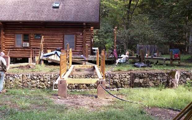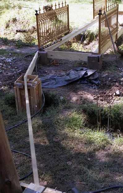 Después de que el hormigón había puesto durante 3 días, las vigas de madera fueron quitadas temporalmente y las formas fueron despojadas de las columnas. Antes de que cualquiera de la madera se resbaló permanentemente en su lugar, negro alquitrán impermeabilización fue manchada sobre la madera en contacto directo con el hormigón.