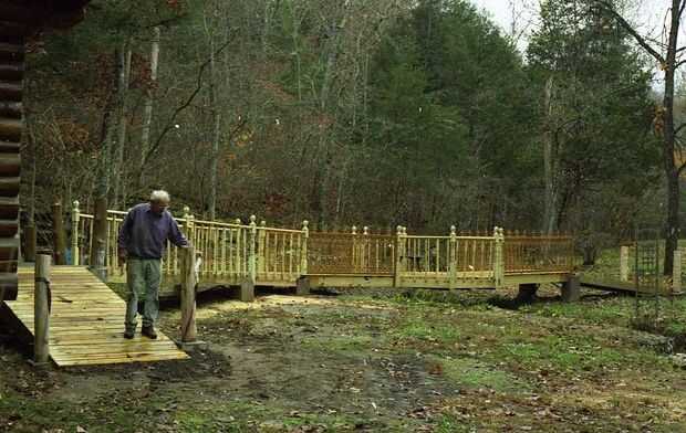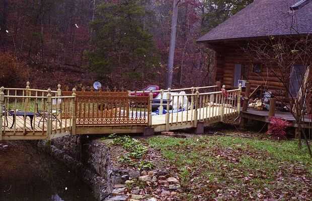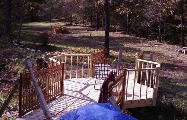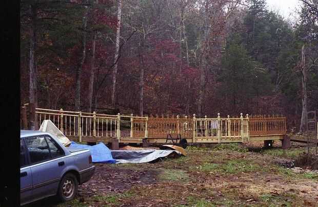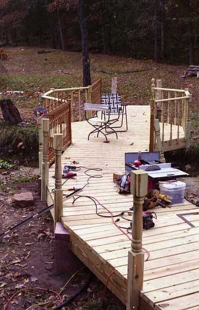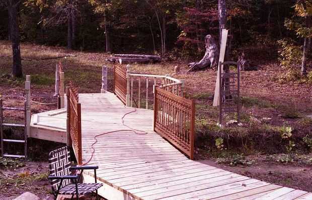 Mac añadido cedro puestos en los puntos intermedios de ambas rampas, construir pasamanos de dos-de madera y protegida toda la estructura exterior grado mancha sólida.