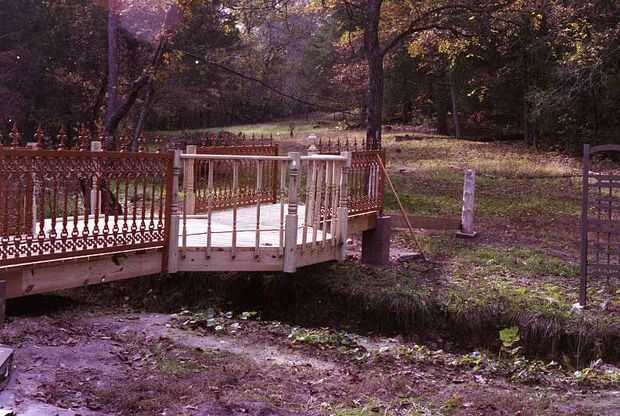 Mac y seleccionadas mensajes, Geri finials (decoraciones superior) y los barrotes (piezas verticales entre los postes pesados). La sección octogonal entre los pasamanos del hierro fue bastante sencilla carpintería. Medir, cortar y perforar los postes antes de apernado a las vigas de borde en la parte inferior. Los barrotes están pretaladrados y atornillados a las vigas entre los postes.