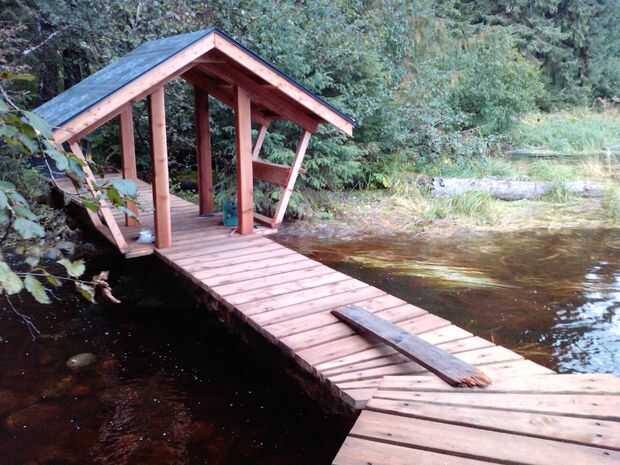 Una membrana impermeable fue unida a la madera contrachapada y entonces la vieja red de pesca fue cubierto sobre el techo para proporcionar el musgo con una base estable.