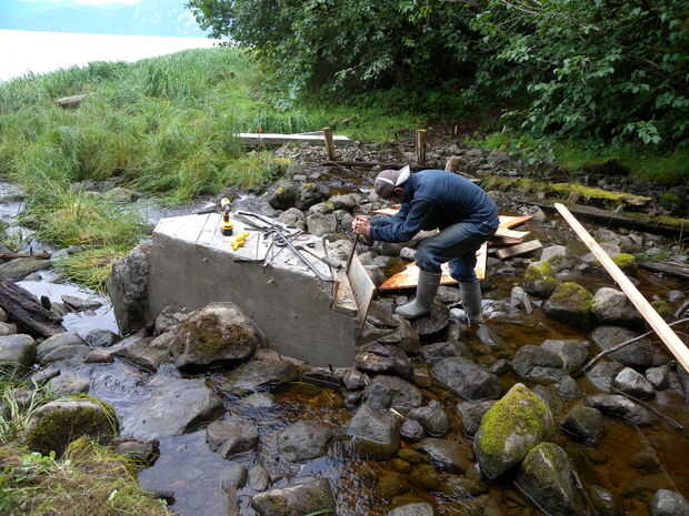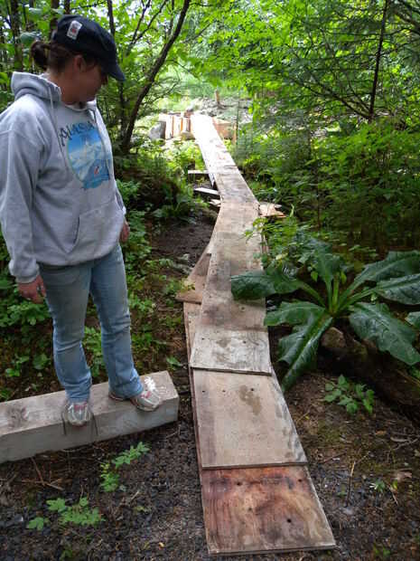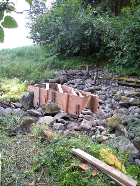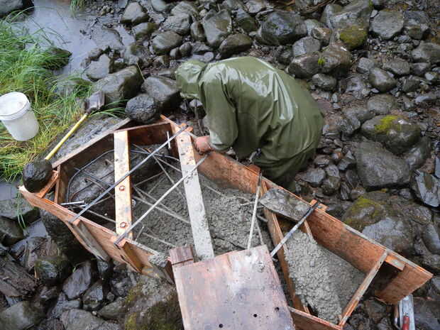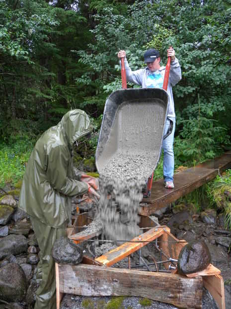 Una rampa fue hecha con postes de 4 x 4 y 2 pies ancho tiras de contrachapado. Entonces nos llena el hormigón en el sitio con carretillas. Insistencia en el hormigón a menudo y golpear ligeramente los lados del formulario para obtener un buen pour.