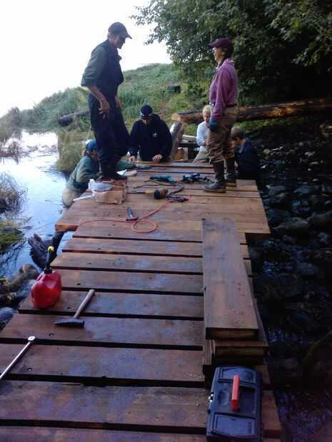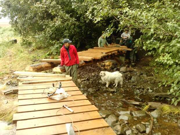 Tableros de cubierta fueron colocado colindantes entre sí y más cuando la choza fue colocada para que un bálsamo de labio caído no termina en la corriente.