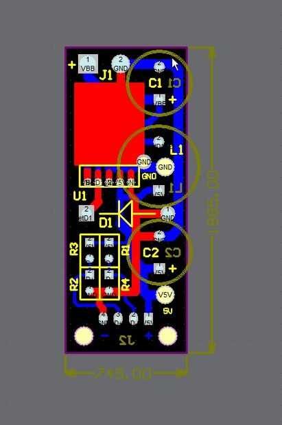 Aquí es el diseño de tablero de circuito impreso.  Son partes en ambos lados de la Junta para crear un diseño más compacto.