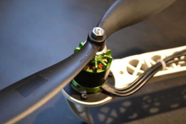 El primer paso es tomar las tuercas de todos los motores de cuatro. A continuación, poner un adaptador de hélice en cada motor, seguido por un accesorio emparejado y finalmente vuelva a enroscar la tuerca.