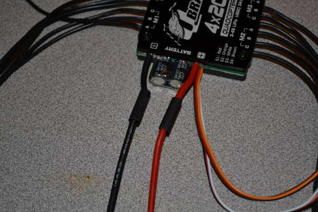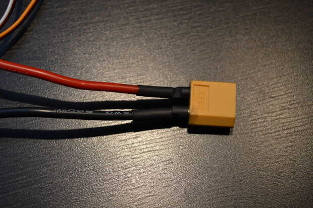 En el siguiente paso, ataremos el cerebro Q cuatro-en-uno ESC al chasis quadcopter. Pero antes de que podemos hacer eso, sólo tendremos que soldar un conector de la batería a los cables de la batería del cerebro Q.