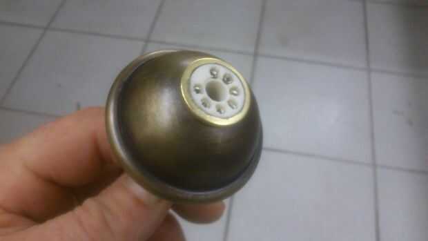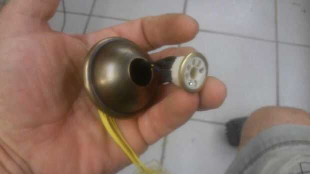 Tomar entrada bola de cobre amarillo y taladro o escofina un agujero del diámetro de la toma de corriente de tubo. Soldar un cable delgado en cada pin y reducirlo. No se olvide de marcar los cables! Ahora todavía otro pequeño anillo de cobre amarillo alrededor de la toma de corriente de tubo y final es el todo.