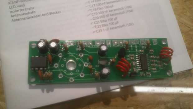 La soldadura de la PCB como en la instrucción de Franzis pero sin cables para el altavoz, el voltaje, el Led y el tubo!