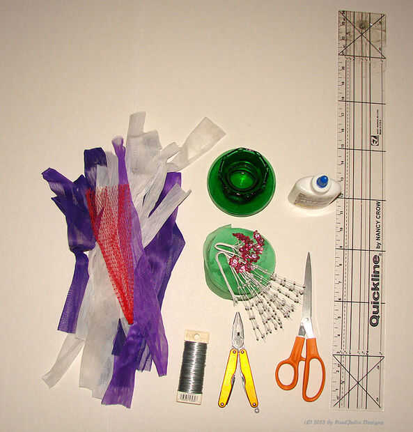 Opcional: Una cebolla de color rojo malla de bolsa y un paquete de aliento de bebé de flores para la decoración adicional.
