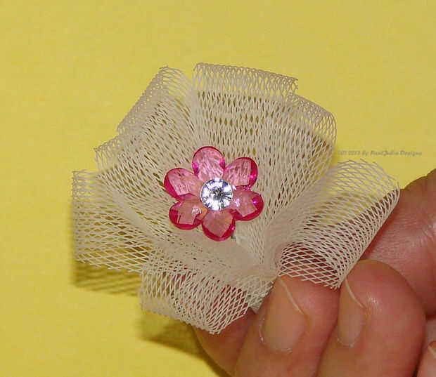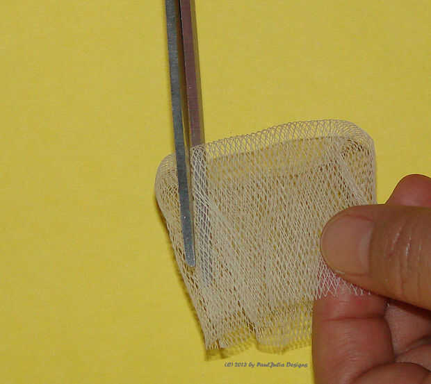 2. para hacer un pétalo, corte la malla hasta 1". Puede cortar hasta seis pétalos.