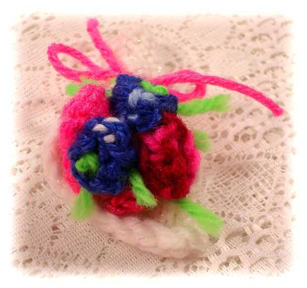 Llevaba mi pequeña boquet a un té del día de las madres ayer (10 de mayo) y terminó regalando a un amigo. Sin embargo, como ya tenía cuatro flores extras de punto, punto dos más, más otro punto envoltura e hice un segundo ramo poco! (por supuesto regaló aquél hoy!) Si quiero otro, solo voy a tener que tejer desde cero!