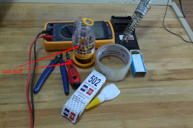 3 scotch tipo y cianoacrilato 502 (mejor utilizar pegamento caliente del derretimiento que tengas)