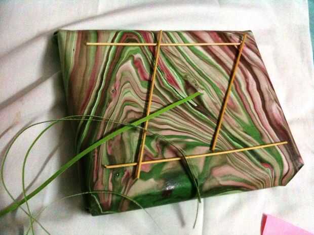 Envuelva alrededor de los palillos y pegamento.