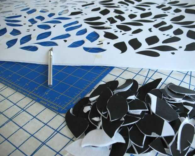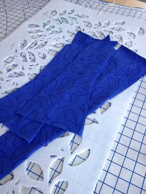 El diseño de la plantilla entonces fue aplicado a la capa superior de la tela con un rotulador de tela.