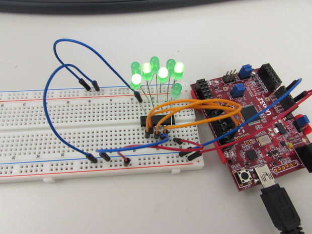 Que realmente encienden los LEDs, necesitamos proporcionar entrada de 8 diferentes señales como 8 impulsos de reloj serial diferentes para llenar correctamente el registro de desplazamiento.