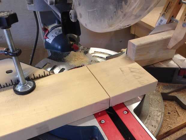 - Abrazadera de un bloque de madera para el chop vio cerca, a partir 1/2" de la hoja (he incluido una foto de mi proyecto de rack de bici para darle una mejor idea de lo que quiero decir). Este bloque le da algo a su registro contra a tope para mantener el espesor de sus posavasos incluso.