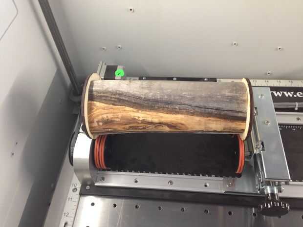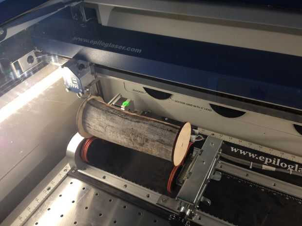 La solución me vino para arriba con, era utilizar dos círculos cortados de contrachapado de abedul, que eran apenas más grandes que el extremo más grande de mi registro. Al final todo el tronco, colocar dentro de los bordes del círculo de madera en cualquiera de los extremos. Tuve suerte de encontrar algunos en el depósito de chatarra:).