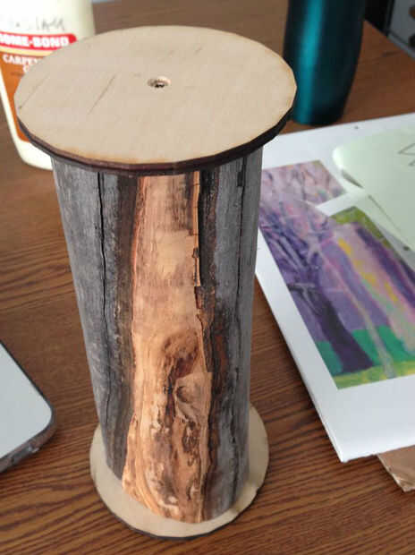 Una vez que tengas tus círculos cortadas, globo ocular el punto aproximado de uno de los extremos de su registro y perfore un orificio piloto. Repetir este proceso en el otro extremo de su registro y hacer lo mismo con los círculos de madera contrachapada.