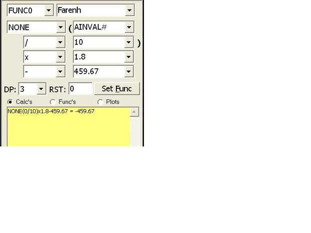 =$a2/10*9/5-459.67  (suponiendo que A2 es el primer elemento de datos... A3 sería el siguiente, etc.).