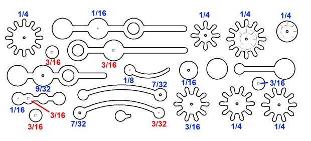 Las ruedas se obtienen a partir de 1/4" abedul Báltico. Deben ser precisamente taladrar agujeros para que tubería de latón puede ser prensa de ajuste y utilizar como herramienta. La mayoría de las ruedas use tubo de latón de 1/4" de diámetro para cenadores que montaré sobre ejes de tubo bronce 7/32".