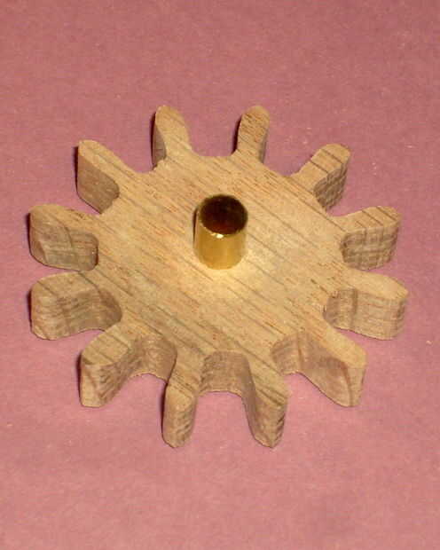 12-tooth piñón con la cara del embrague unidireccional es el mate a este conjunto de engranajes. El eje de este piñón es un diámetro tubo de ¼" que es 5/8" largo. Insértela en el piñón para que el extremo del eje esté al ras con la cara del embrague.