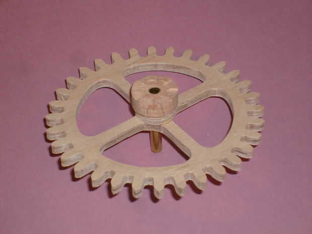 A continuación, deslice la rueda de cuatro brazos de la 32T12 sobre el eje. (Tenga en cuenta que la rueda de cuatro brazos de 32T12 es más pequeña en diámetro que la rueda 32T8 - uso correcto!) Garantizar que el eje y el cubo con pegamento.