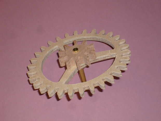 Un reloj de engranajes de madera con un mecanismo único (14 / 34 paso)
